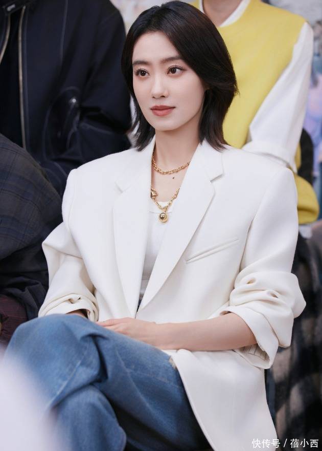 03白色西装外套+牛仔裤